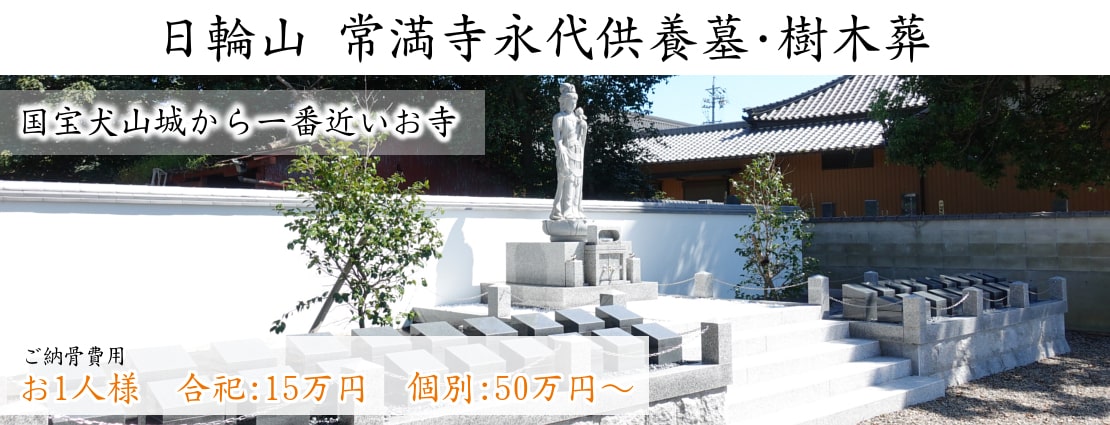 常満寺の永代供養墓・樹木葬のある常満寺は、犬山城とゆかりのある寺院です。歴史も古く、令和三年には創建730年を迎えました。寺院の名前がついた「常満椿」があることでも知られており、犬山城から南に300メートル程にあるお城に一番近いお寺です。山門(犬山城松の丸裏門)や鐘楼が登録有形文化財として登録されています。また、最寄の名鉄犬山線「犬山駅」から徒歩で約10分の場所にございますので、お車の運転をされない方にも安心してお越しいただけます。